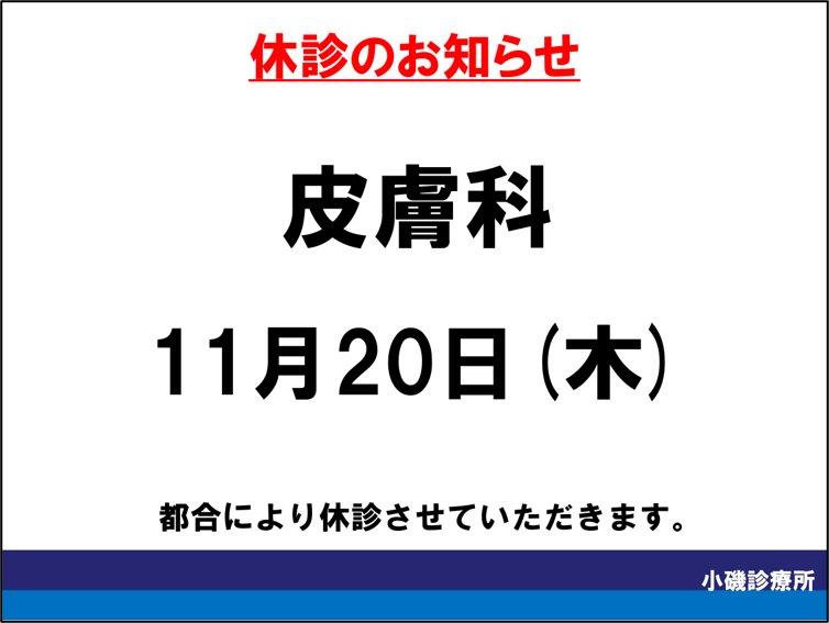【皮膚科】11月20日(木)休診のお知らせ