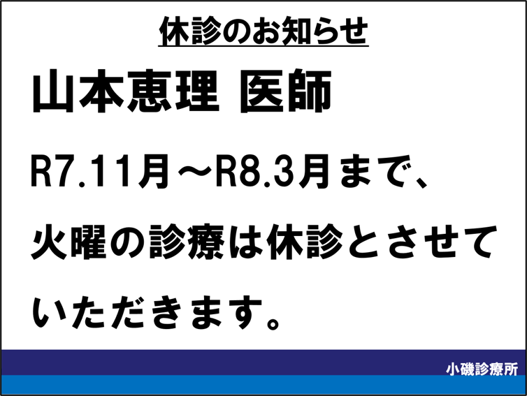 【内科】山本恵理医師 火曜日外来休診(R7.11月~R8.3月)