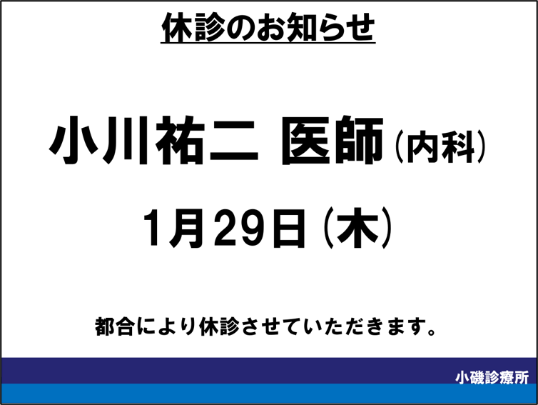 【内科】小川祐二医師 休診のお知らせ〔1月29日(木)、2月5日(木)〕