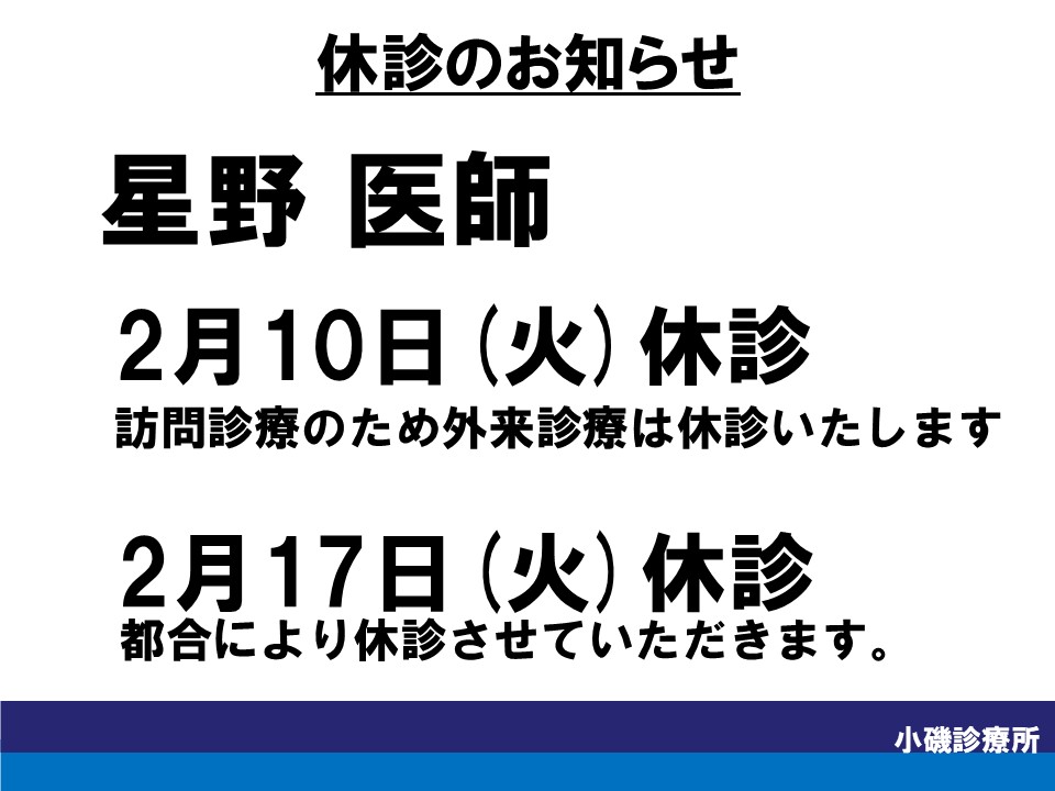 【小磯第2診療所】眼科 休診のお知らせ〔3月3日(火)、5日(木)、21(土)〕