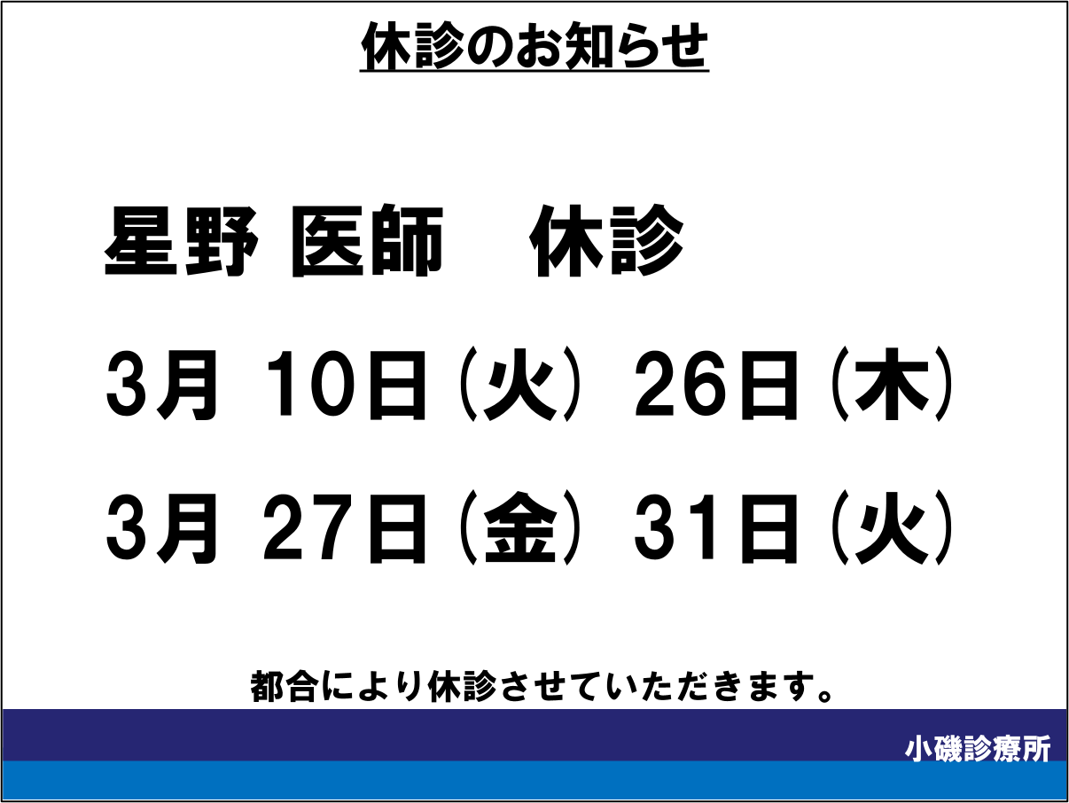 【内科】星野医師 3月休診のお知らせ