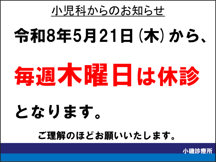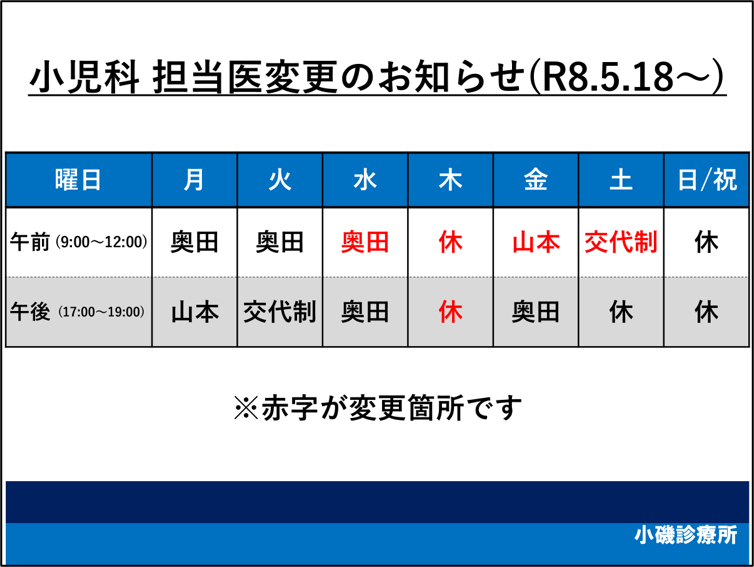 【小児科】診療日・担当医変更のお知らせ(R8.5.18~)