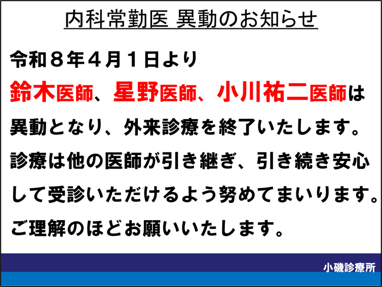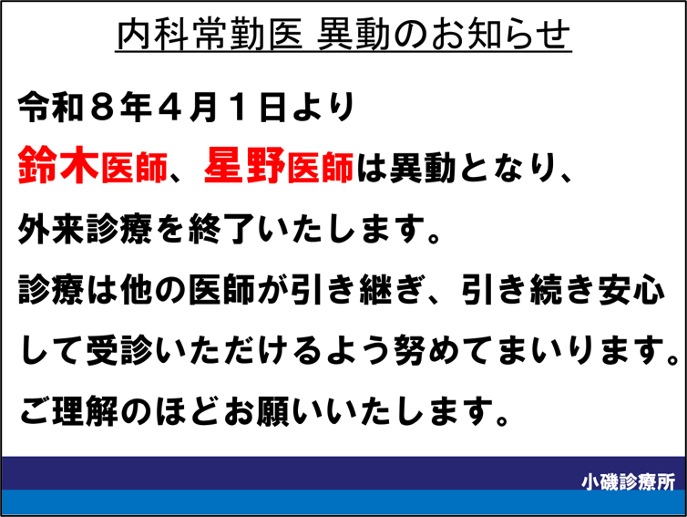 【内科】常勤医異動のお知らせ(令和8年4月~)