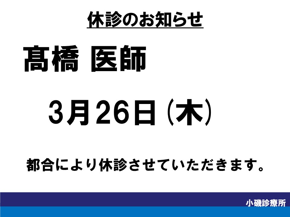 【内科】髙橋医師 3月26日(木)休診のお知らせ