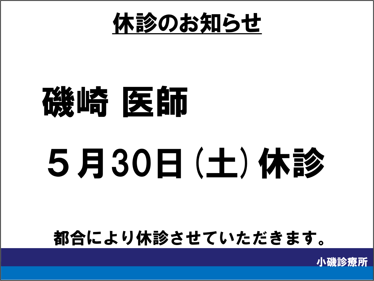 【内科】磯崎医師 休診のお知らせ〔5月30日(土)〕