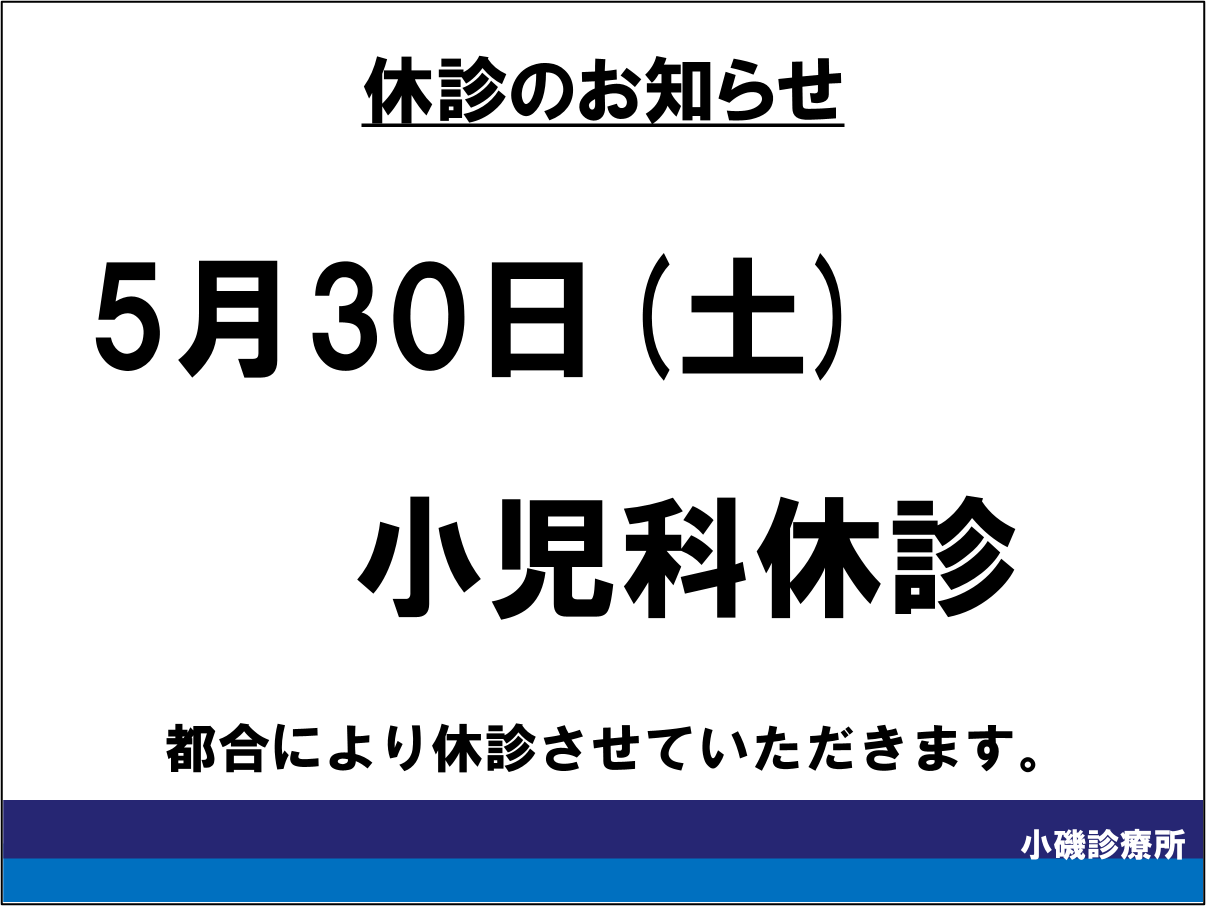 【小児科】5/30(土)休診のお知らせ
